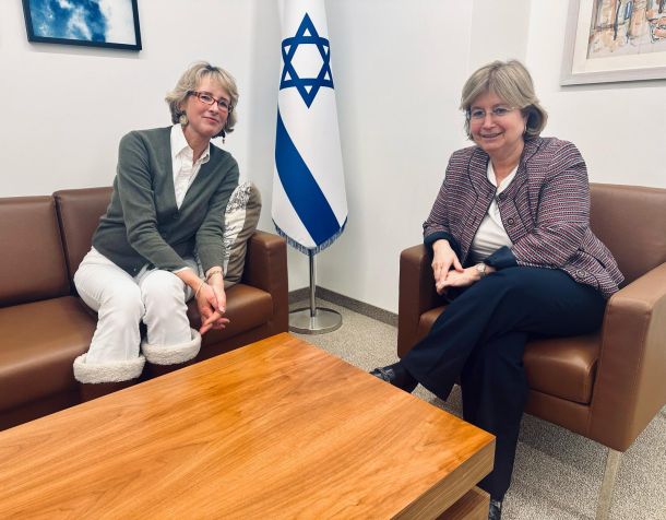 Das Prozedere, um ins israelische Generalkonsulat in München eintreten zu können, erinnert an die Sicherheitskontrollen am Flughafen: Vor der Schleuse Boots aus, Gürtel und Schmuck ablegen, bis man nicht mehr verdächtig piept. PC und iPhone müssen ganz draußen bleiben – und inmitten des hoch gesicherten Umfeldes fühlt man sich plötzlich unsicher ohne die gewohnten Arbeitsgeräte. Doch der herzliche Empfang und das entspannte Gespräch mit Talya Lador-Fresher, Israels Generalkonsulin für Süddeutschland, lassen schnell vergessen, welche Hürden man nehmen muss, um ins Innere des Gebäudes zu gela…